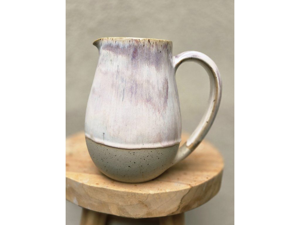Ručně točený keramický džbán o objemu 1,5 l v jemných růžovo-fialových tónech vnese do vašeho