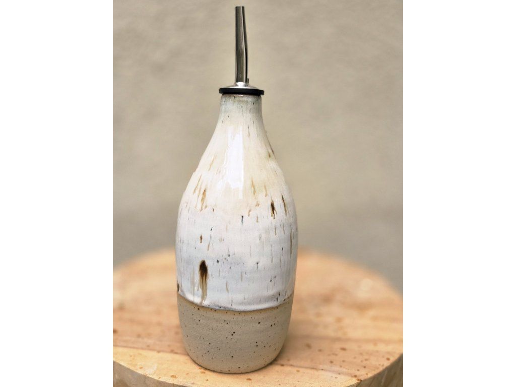 Keramická olejnička o objemu 550 ml je ručně točená na hrnčířském kruhu, což jí dodává jedinečný