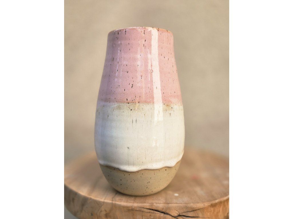 Keramická váza vznikala na volně na hrnčířském kruhu. Pálena v elektrické peci na vysoké teploty.